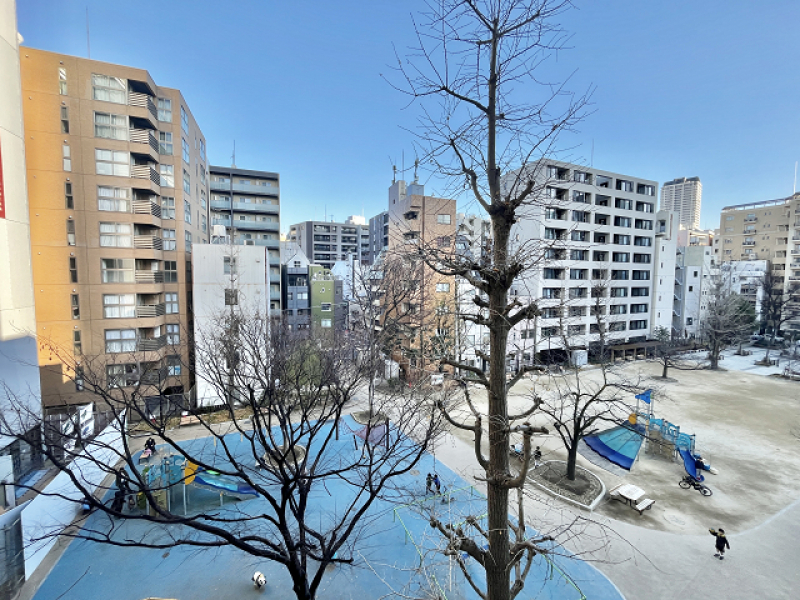 ◆北東向きは堀留児童公園につき、眺望に開放感があります。